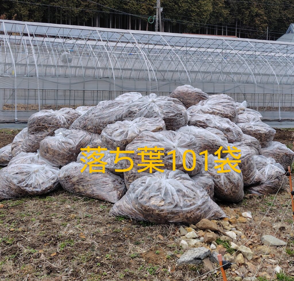 シーズンオフの作業として前回触れた落ち葉拾い、今までやってなかった、というか、出来なかったのですが、私がシーズンオフにしてたバイトを辞め🍅も軌道に乗ってきて、今年は出来てしまいました✌️同じ平川の先輩農家さんに大量に落ち葉が拾えるポイントを教えてもらい、計算では多分101袋!中途半端〰️🤣地域の(清掃)為にいくらでも取ってくれと言われましたが、そろそろ他の作業もしないと。